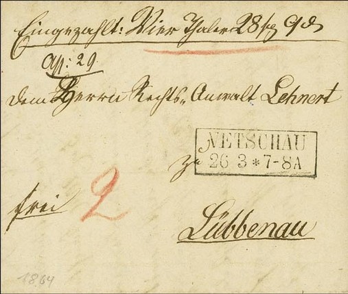der Briefgebühr von 2 Silbergroschen (einfacher Brief in der